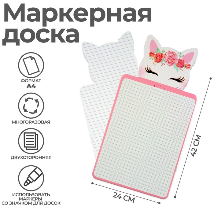 Доска маркерная A4 (33/46 х 24 см), Calligrata "Кошка", двусторонняя: клетка/линейка, фигурная