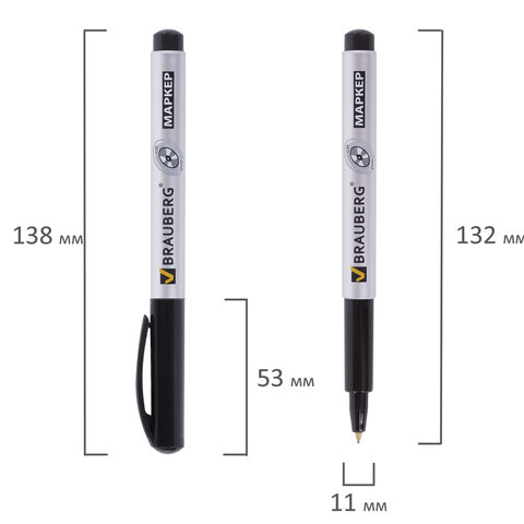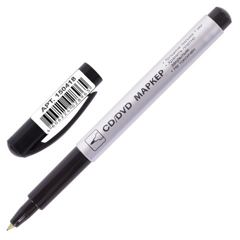 Маркер для CD и DVD BRAUBERG, ЧЕРНЫЙ, супертонкий металлический наконечник, 0,5 мм, 150512
