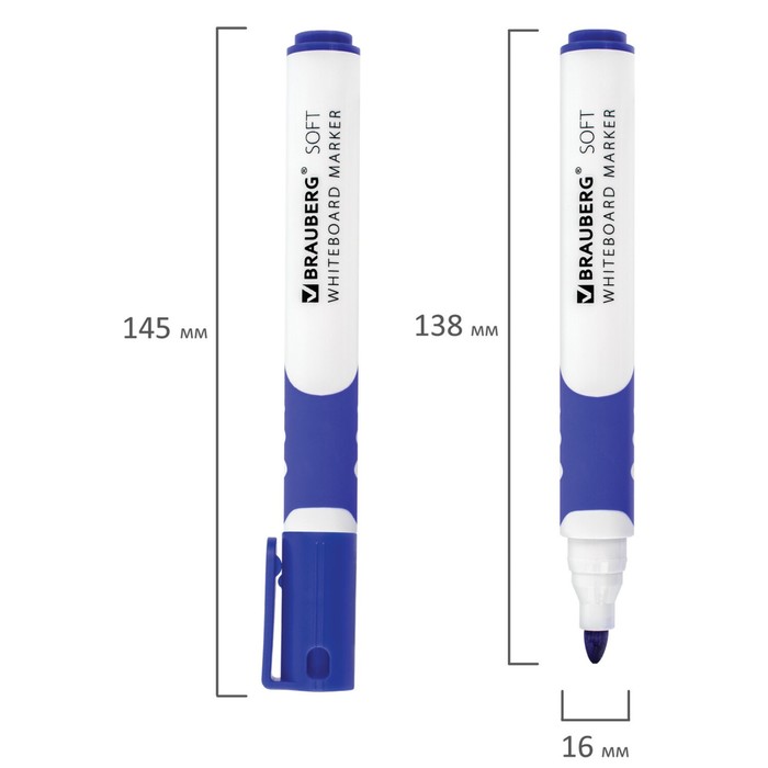 Маркеры на водной основе со стиралкой и магнитом, набор — 4 шт., цвет синий