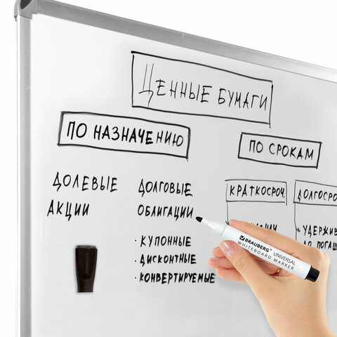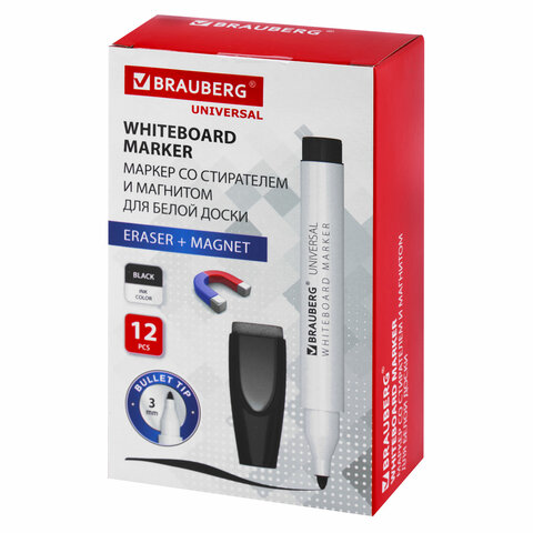 Маркер на магните со стирателем BRAUBERG "UNIVERSAL" предназначен для использования на белых досках с магнитно-маркерной поверхностью. Идеально подходит для проведения презентаций, совещаний, уроков.