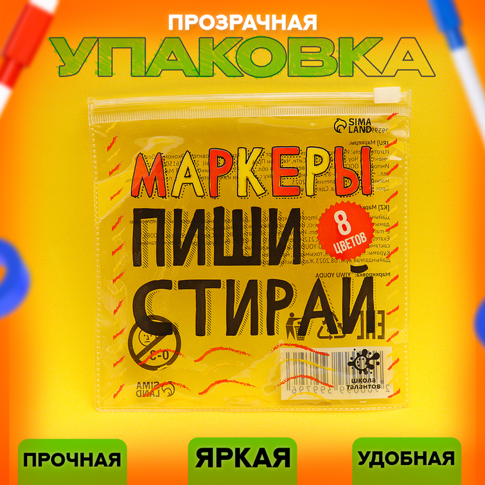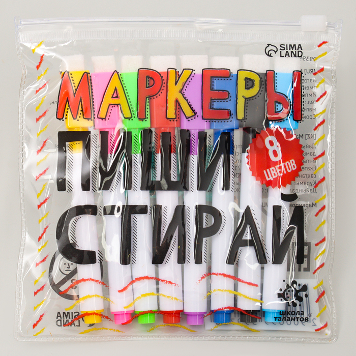 Маркеры с магнитом, цветные, на водной основе, набор — 8 шт.