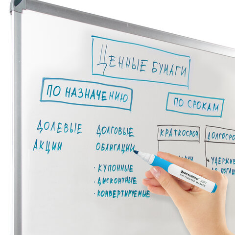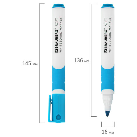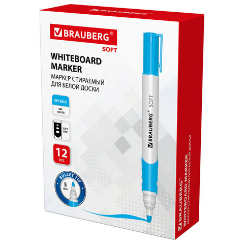 Высококачественный маркер BRAUBERG "SOFT" для белой доски. Предназначен для письма на досках с магнитно-маркерной поверхностью.