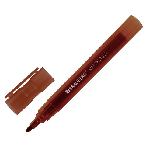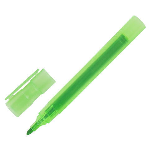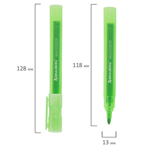 12 цветов в наборе: черный, красный, синий, зеленый, коричневый, розовый, светло-голубой, светло-зеленый, оранжевый, желтый, кофейный, фиолетовый. Круглый пластиковый корпус имеет диаметр 13 мм. Наконечник круглой формы обеспечивает толщину линии письма 3 мм, что позволяет писать крупным шрифтом, который будет хорошо виден. Основа чернил - спиртовая. Чернила быстро высыхают и не оставляют разводов, легко стираются сухой губкой. Изделие не перезаправляется. Цвет корпуса соответствует цвету чернил.