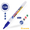 Прочный фибровый наконечник не западает в корпус и сохраняет форму на протяжении всего срока службы маркера. След от маркера легко удаляется сухой губкой. Пулевидный наконечник позволяет наносить яркие и однородные линии толщиной 2 мм.. Цвет чернил - синий. Упаковка: картонная коробочка по 12 штук.