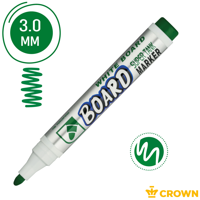 Маркер Crown "Multi Board" предназначен для письма по офисным , магнитно-маркерным доскам , а так же любым непористым поверхностям (стекло, фарфор, пластик и пр.) <br/>Классический круглый корпус выполнен из высококачественного первичного пластика, обеспечивающего высокую прочность и долгий срок службы маркера. Благодаря особому строению пишущего узла чернила дозированно поступают на поверхность, не вытекают и не образуют клякс. Маркер имеет увеличенный запас чернил (Super tank) и пишет значительно дольше аналогов. Чернила на спиртовой основе, быстро высыхают на поверхности. След от маркера легко удаляется сухой губкой. Маркер до двух дней не высыхает без колпачка, а при закрытом колпачке в течение одного часа полностью восстанавливает свои свойства! Длина линии письма - до 700 метров. Упаковка: картонная коробочка по 12 штук.