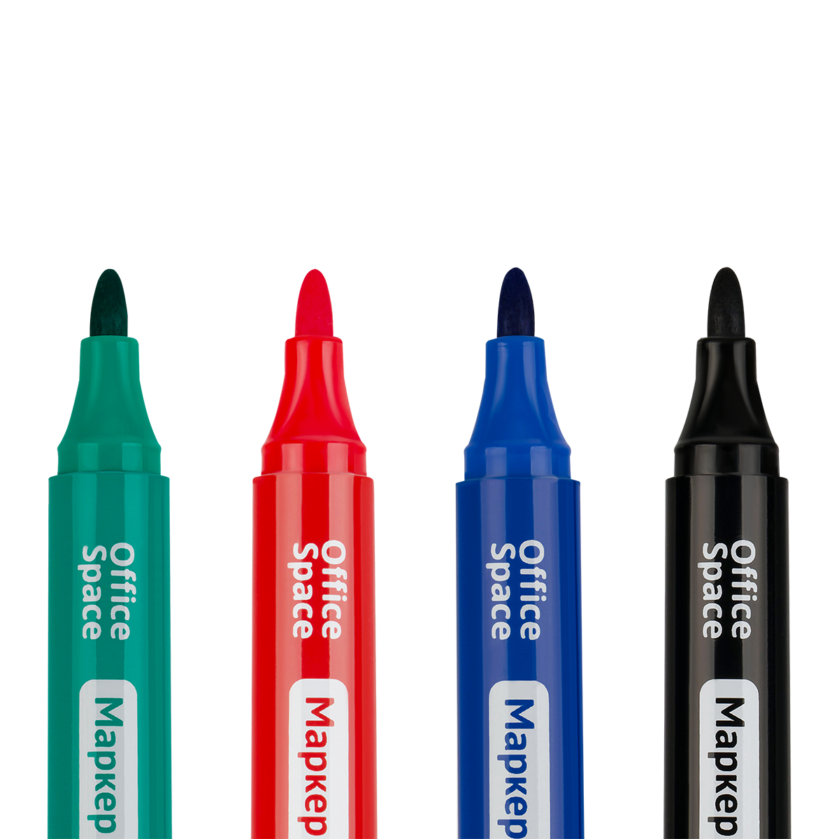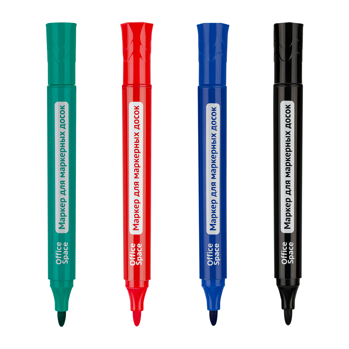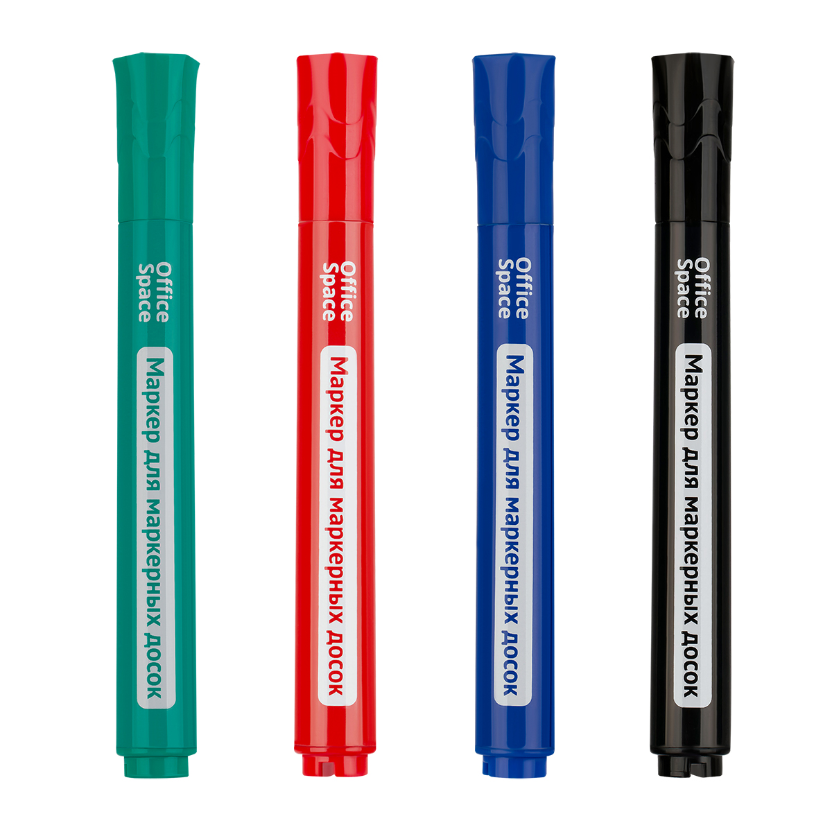 Набор маркеров для белых досок OfficeSpace 04цв., пулевидный, 3мм, чехол с европодвесом