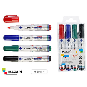 Набор маркеров для доски " Mazari " Signal 4цв (красный, черный, зеленый, синий) 4мм пулевидный наконечник