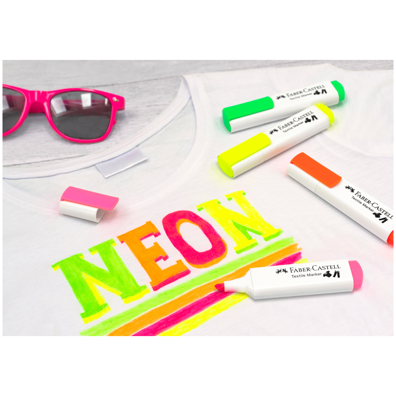 Маркер перманентный Faber-Castell Textile Neon подходит для различных видов тканей: от хлопковых сумок и футболок, до тканей для интерьера. Идеально для дизайнеров по текстилю, отличное решение для тех, кто стремится к самовыражению и яркой индивидуальности. Цвета автоматически закрепляются через 24 часа, или после глажки. Не стирается при стирке при 40 ° C в зависимости от типа ткани и содержания натуральных волокон. Рекомендуется по возможности стирать новые ткани перед декорированием, чтобы улучшить впитывание чернил. Также, чтобы защитить декорированные вручную предметы от чрезмерного механического трения в стиральной машине, просто нужно вывернуть их наизнанку перед стиркой или воспользоваться сеткой для стирки. Ручная стирка должна быть еще более бережной, в идеале с мягким моющим средством. Светятся в темноте! Товар имеет прямоугольную форму корпуса и водостойкие пигментированные чернила на водной основе.<br/>• Цвет чернил: неоново-желтый;<br/>• Тип чернил: водостойкие;<br/>• Толщина линии письма: 1-5 мм;<br/>• Производство Австрия.