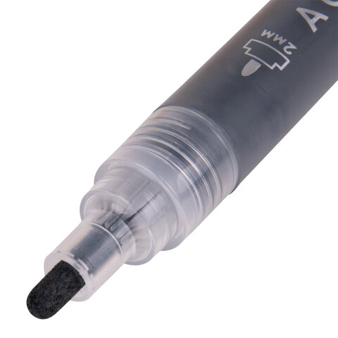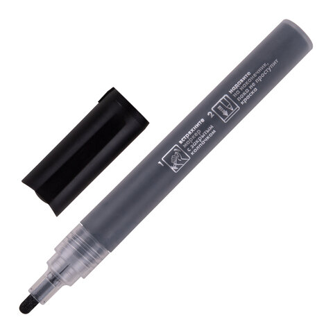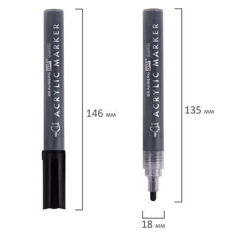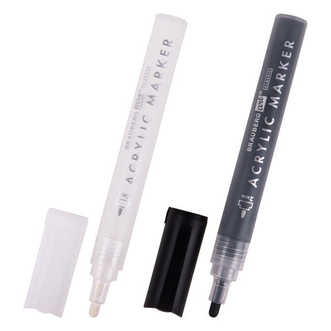 2 цвета в наборе: черный и белый. Круглый пластиковый корпус, внутри которого находится металлический цилиндр для взбалтывания краски, имеет диаметр 18 мм. Пигментированная акриловая краска на водной основе практически не имеет запаха, после высыхания обладает повышенной светостойкостью и водостойкостью. Краска обладает превосходной укрывистостью. Благодаря водной основе краска быстро сохнет и не размазывается. Надежный помповый механизм подачи краски предотвращает вытекание и разбрызгивание в процессе использования, а также преждевременное высыхание. С помощью круглого прочного наконечника, выполненного из пористого акрила с шириной линии письма 2 мм, можно легко наносить линии средней толщины. Цвет корпуса и колпачка соответствует цвету краски.