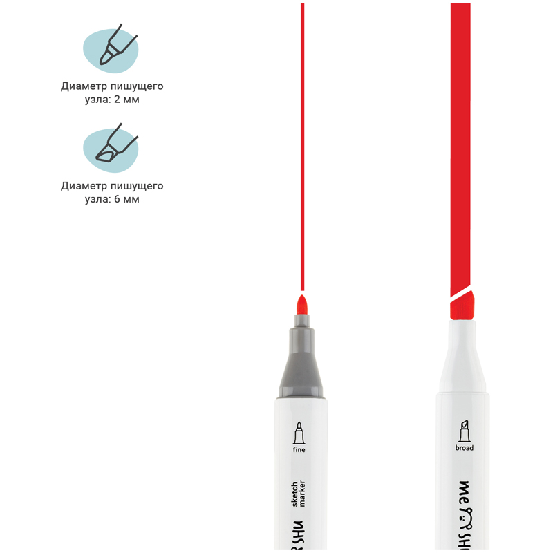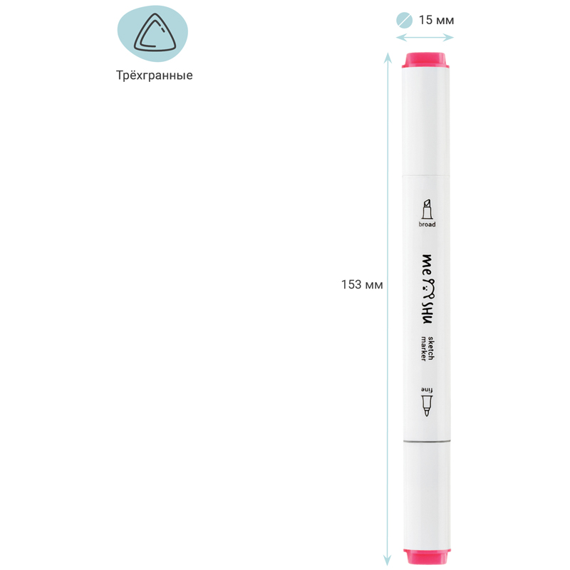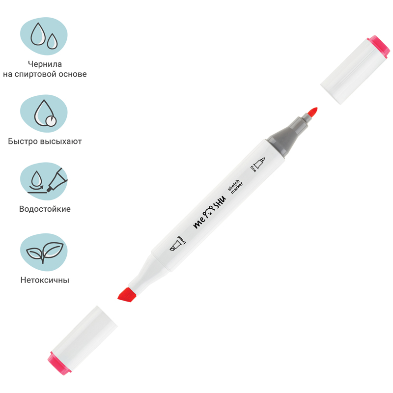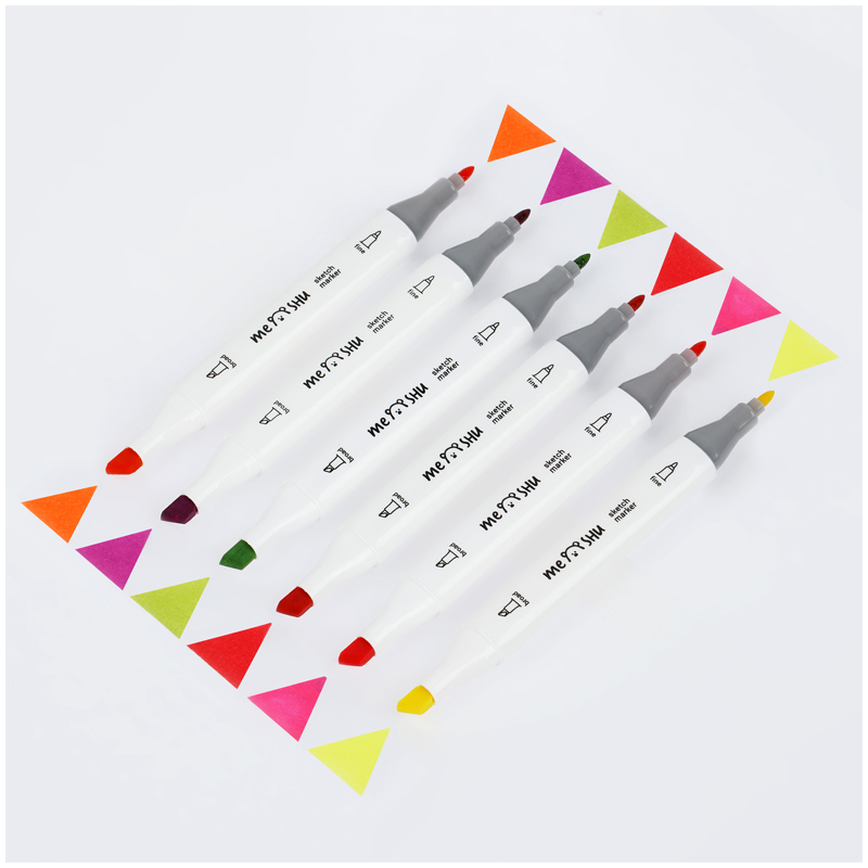 Набор двусторонних маркеров для скетчинга Meshu - идеальный выбор для художников, дизайнеров, иллюстраторов и любителей скетчинга, подходят для создания анимэ и манги. Эргономичный трехгранный корпус удобно лежит в руке и позволяет эффективно прорабатывать мелкие детали рисунка. Чернила на спиртовой основе - быстро высыхают, водостойкие, нетоксичны и не портят поверхность бумаги. Маркеры обладают пулевидным (2мм) и скошенным (6 мм) наконечниками, что позволяет прорабатывать как мелкие детали рисунка. так и закрашивать большие области.