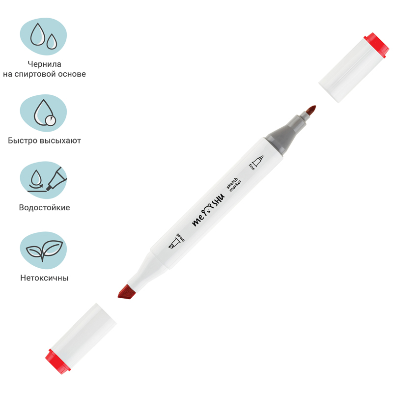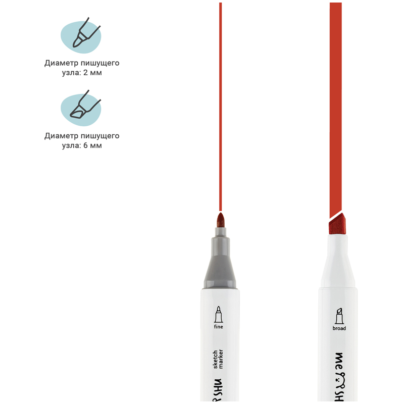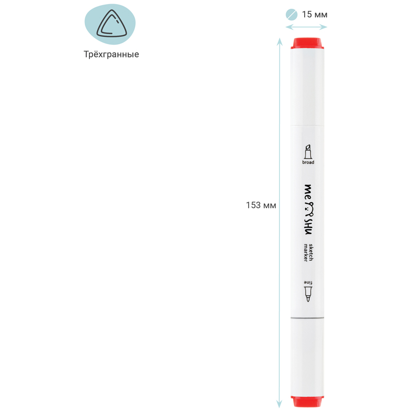 Набор двусторонних маркеров для скетчинга Meshu - идеальный выбор для художников, дизайнеров, иллюстраторов и любителей скетчинга, подходят для создания анимэ и манги. Эргономичный трехгранный корпус удобно лежит в руке и позволяет эффективно прорабатывать мелкие детали рисунка. Чернила на спиртовой основе - быстро высыхают, водостойкие, нетоксичны и не портят поверхность бумаги. Маркеры обладают пулевидным (2мм) и скошенным (6 мм) наконечниками, что позволяет прорабатывать как мелкие детали рисунка. так и закрашивать большие области.