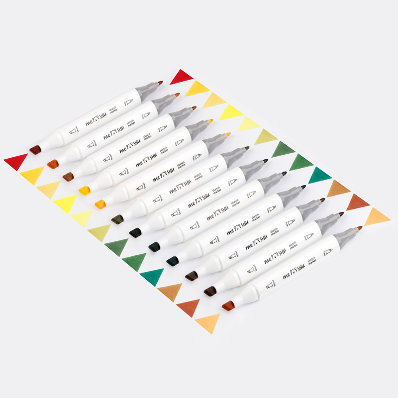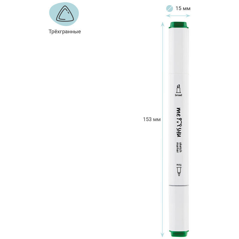 Набор двусторонних маркеров для скетчинга Meshu - идеальный выбор для художников, дизайнеров, иллюстраторов и любителей скетчинга, подходят для создания анимэ и манги. Эргономичный трехгранный корпус удобно лежит в руке и позволяет эффективно прорабатывать мелкие детали рисунка. Чернила на спиртовой основе - быстро высыхают, водостойкие, нетоксичны и не портят поверхность бумаги. Маркеры обладают пулевидным (2мм) и скошенным (6 мм) наконечниками, что позволяет прорабатывать как мелкие детали рисунка. так и закрашивать большие области.