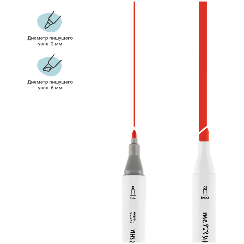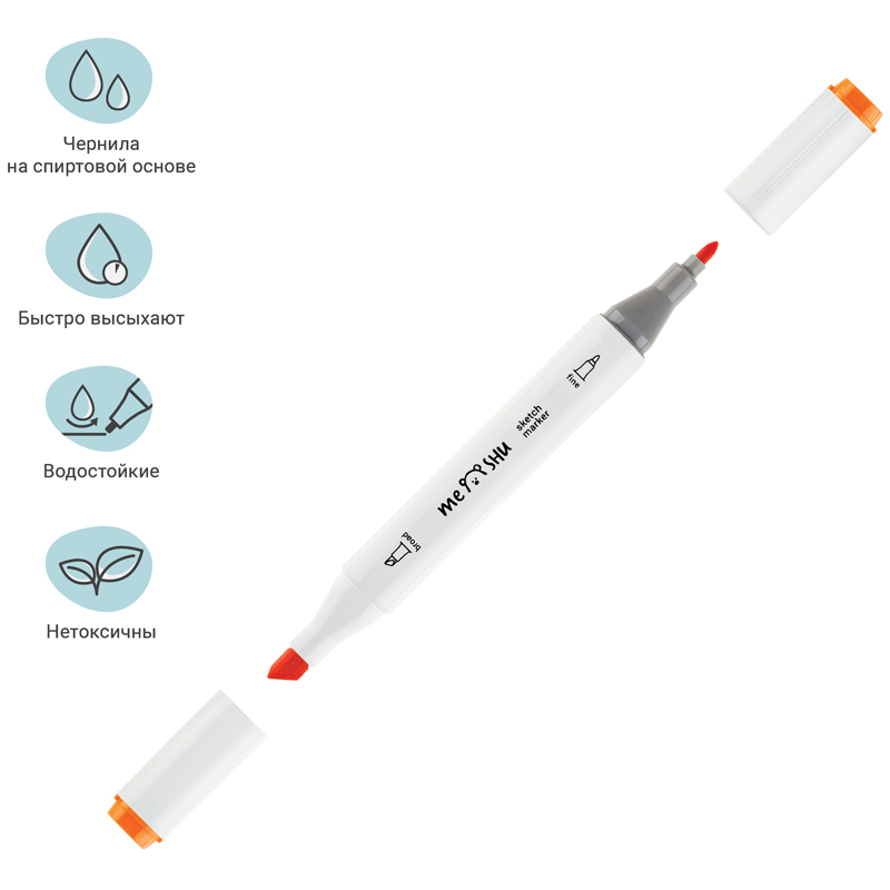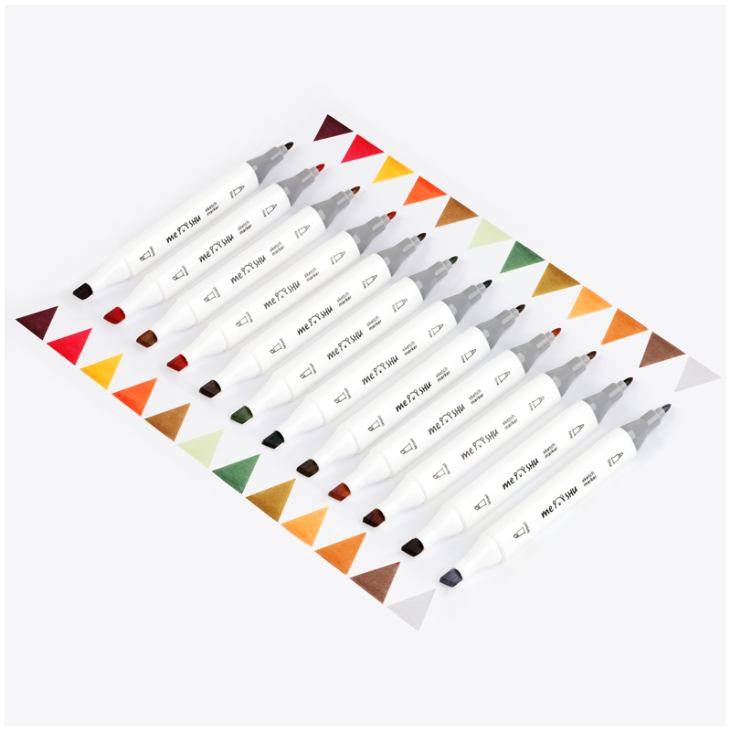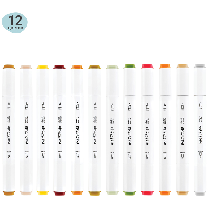 Набор двусторонних маркеров для скетчинга Meshu - идеальный выбор для художников, дизайнеров, иллюстраторов и любителей скетчинга, подходят для создания анимэ и манги. Эргономичный трехгранный корпус удобно лежит в руке и позволяет эффективно прорабатывать мелкие детали рисунка. Чернила на спиртовой основе - быстро высыхают, водостойкие, нетоксичны и не портят поверхность бумаги. Маркеры обладают пулевидным (2мм) и скошенным (6 мм) наконечниками, что позволяет прорабатывать как мелкие детали рисунка. так и закрашивать большие области.