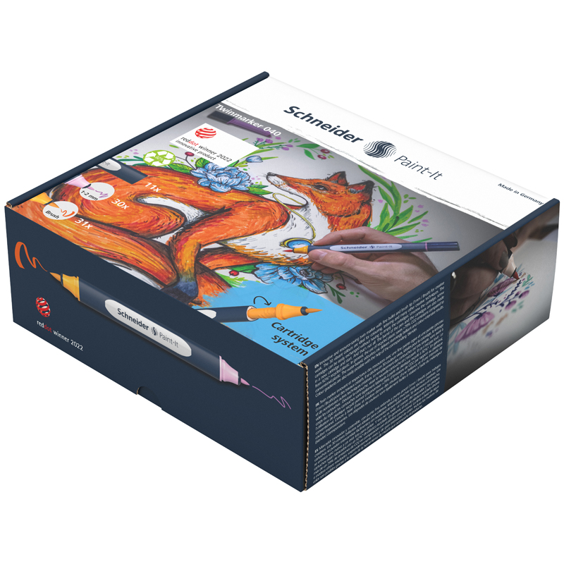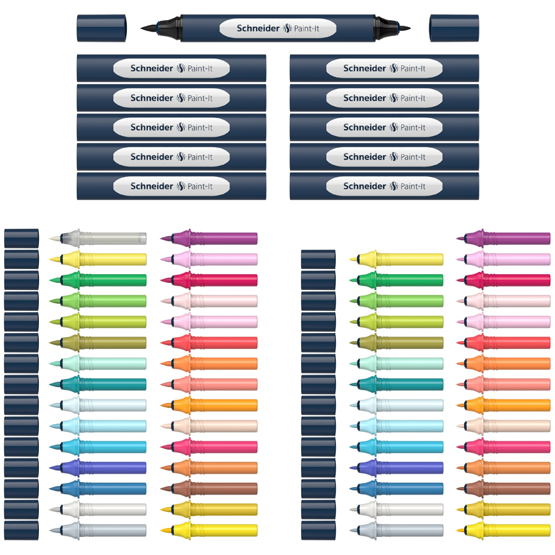 УЦЕНКА-Набор двухсторонних маркеров-кистей Schneider "Twinmarker Paint-It" 72 предмета, на водной основе, кисть/пулевидный