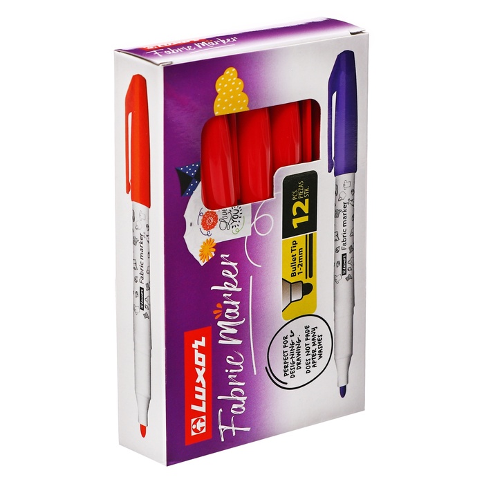 Набор маркеров для ткани 4 цвета, Luxor "Fabric", 1-2 мм, пулевидный, в блистере