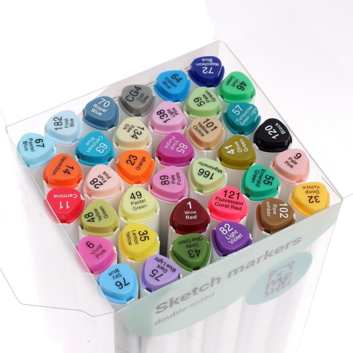 Набор маркеров 36 цветов, двусторонние, черный корпус в пластиковом пенале
