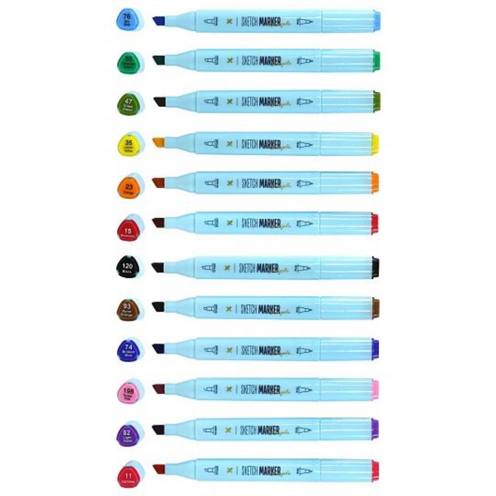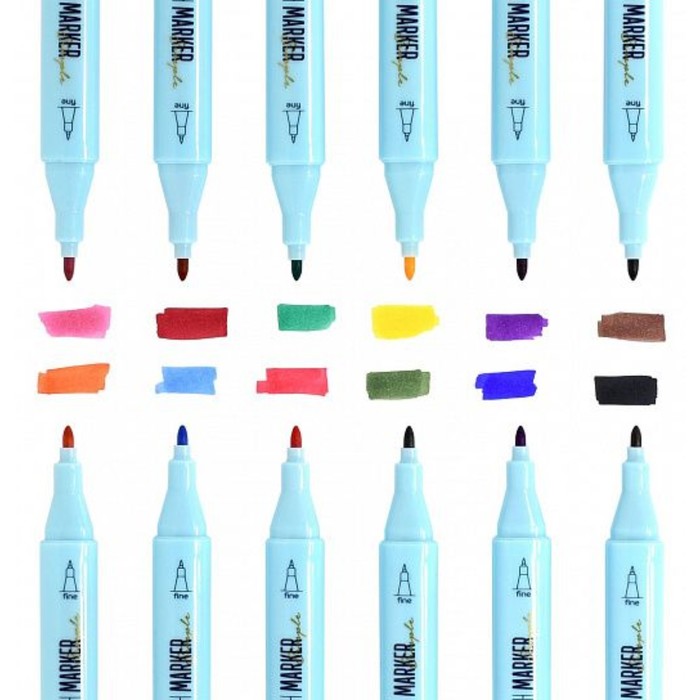 Набор маркеров 12 цветов, двусторонние, черный корпус в пластиковом пенале