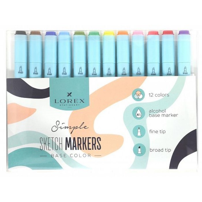 Маркер художественный блендер LOREX "SIMPLE", двусторонний, наконечник: кисть (1.0 мм) и скошенный (6.0 мм), спиртовой