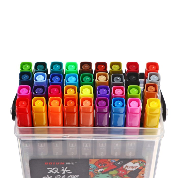 Набор маркеров 36 цветов, двусторонние, черный корпус в пластиковом пенале