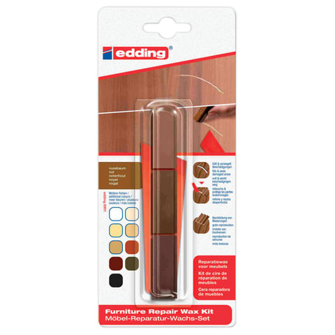Воск для ремонта мебели EDDING 8901 НАБОР 3 шт., ГРЕЦКИЙ ОРЕХ (3 оттенка), шпатель, E-8901/3-B/602