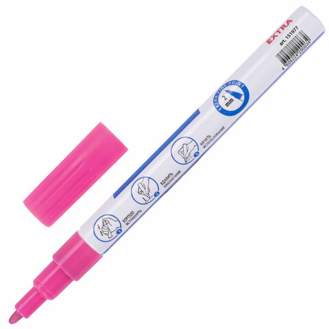 Высококачественные чернила розового цвета с лаковым эффектом идеально подходят для нанесения долговечной маркировки на любые поверхности. Благодаря усиленной формуле чернил краска ложится ровным слоем, полностью закрашивая поверхность. С помощью круглого прочного наконечника, выполненного из пористого акрила с шириной линии письма 2 мм, можно легко наносить линии средней толщины. Быстросохнущие чернила предотвращают смазывание в процессе маркировки. После высыхания надписи становятся термо- и водостойкими, а также устойчивыми к выцветанию и механическому истиранию. Отлично подходит для маскировки бытовых дефектов, таких как царапины и сколы. Надежный помповый механизм подачи чернил предотвращает вытекание и разбрызгивание в процессе использования, а также преждевременное высыхание. Корпус маркера выполнен из алюминия, внутри находятся 2 металлических шарика для взбалтывания краски. Цвет колпачка соответствует цвету чернил.