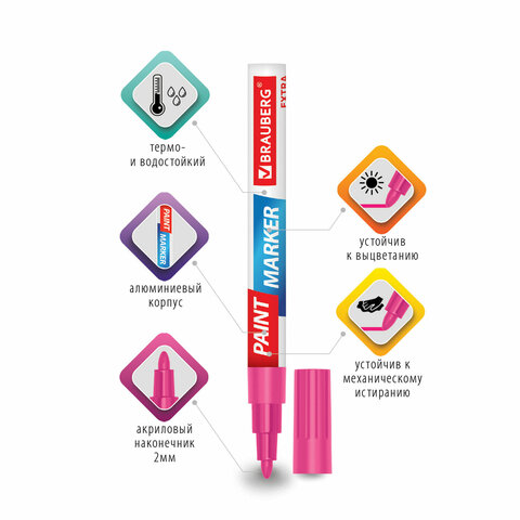 Маркер-краска лаковый BRAUBERG EXTRA предназначен для маркировки на различных поверхностях: бетон, дерево, стекло, металл, резина, пластик как в промышленных, так и в бытовых целях.
