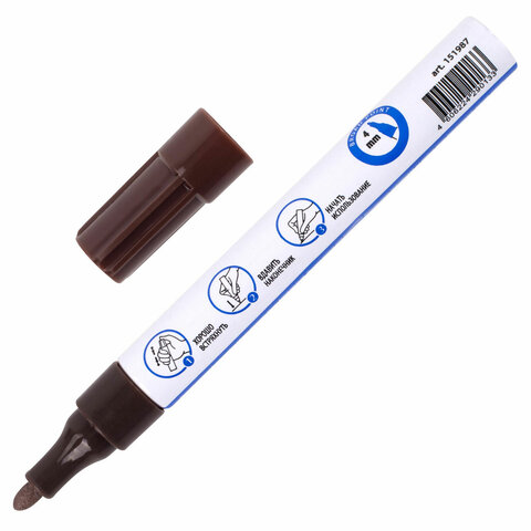 Высококачественные чернила коричневого цвета с лаковым эффектом идеально подходят для нанесения долговечной маркировки на любые поверхности. Благодаря усиленной формуле чернил краска ложится ровным слоем, полностью закрашивая поверхность. С помощью круглого прочного наконечника, выполненного из пористого акрила с шириной линии письма 4 мм, можно легко наносить широкие линии. Быстросохнущие чернила предотвращают смазывание в процессе маркировки. После высыхания надписи становятся термо- и водостойкими, а также устойчивыми к выцветанию и механическому истиранию. Отлично подходит для маскировки бытовых дефектов, таких как царапины и сколы. Надежный помповый механизм подачи чернил предотвращает вытекание и разбрызгивание в процессе использования, а также преждевременное высыхание. Корпус маркера выполнен из алюминия, внутри находятся 2 металлических шарика для взбалтывания краски. Цвет колпачка соответствует цвету чернил.