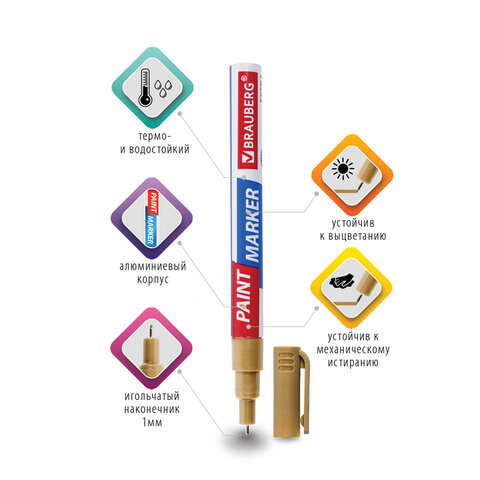 Маркер-краска лаковый BRAUBERG EXTRA предназначен для маркировки на различных поверхностях: бетон, дерево, стекло, металл, резина, пластик как в промышленных, так и в бытовых целях.