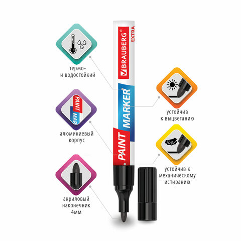 Набор маркеров-красок лаковых BRAUBERG EXTRA предназначен для маркировки на различных поверхностях: бетон, дерево, стекло, металл, резина, пластик как в промышленных, так и в бытовых целях.