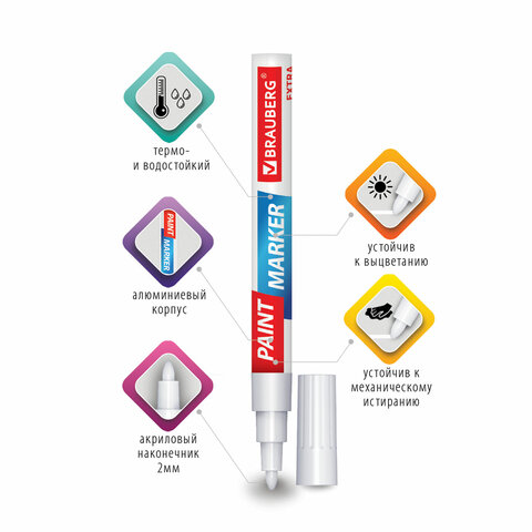 Маркер-краска лаковый BRAUBERG EXTRA предназначен для маркировки на различных поверхностях: бетон, дерево, стекло, металл, резина, пластик как в промышленных, так и в бытовых целях.