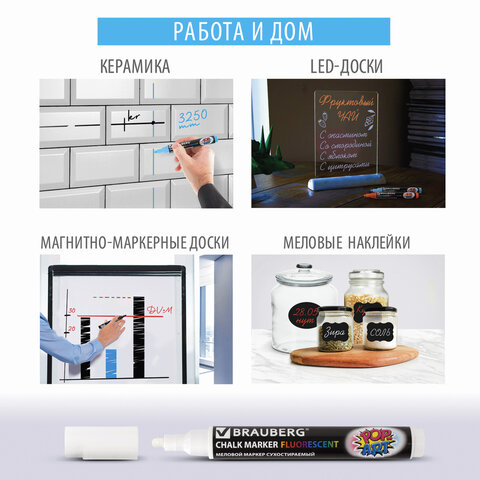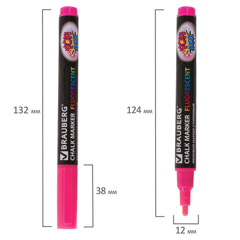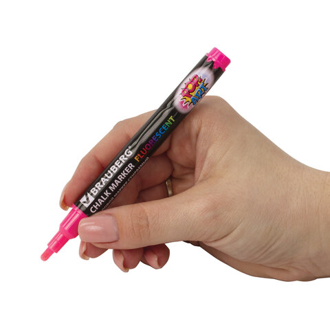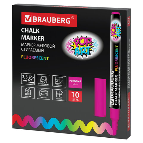 Сухостираемый меловой маркер BRAUBERG "POP-ART" - оригинальный инструмент для оформления различных зон помещений. Идеален для использования на школьных занятиях и детского творчества.