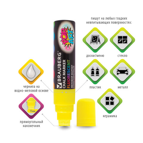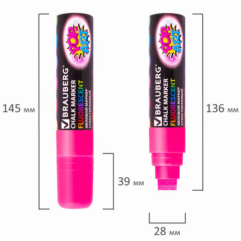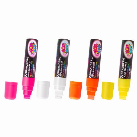 Стираемые меловые маркеры BRAUBERG "POP-ART" - оригинальный инструмент для оформления различных зон помещений. Идеальны для использования на школьных занятиях и детского творчества.