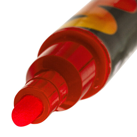 Предназначены для росписи, создания рисунков и надписей на зеркалах, стекле, меловой пленке и прочих гладких и прозрачных невпитывающих поверхностях. Рисунок получается плотный и яркий. Чернила на водно-меловой основе без резкого запаха. В наборе 6 меловых маркеров следующих цветов: белый, желтый, оранжевый, розовый, красный, зеленый. Толщина линии письма - от 1 мм до 3,5 мм, зависит от угла наклона мелового маркера. Круглый корпус выполнен из пластика.