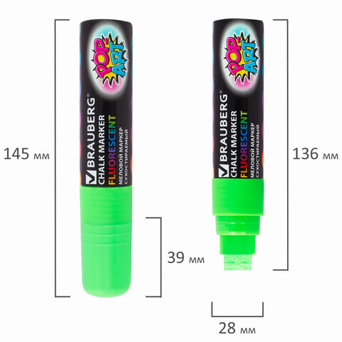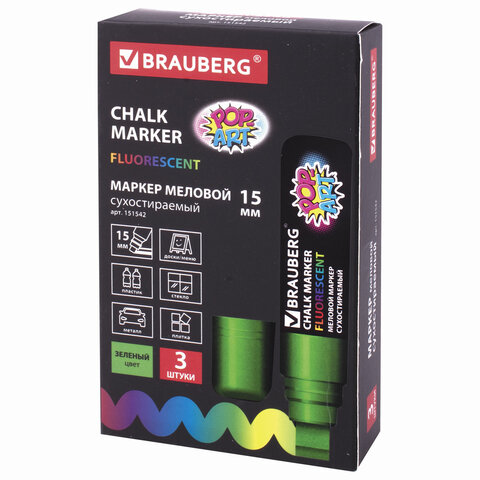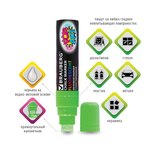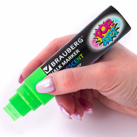 Стираемый меловой маркер BRAUBERG "POP-ART" - оригинальный инструмент для оформления различных зон помещений. Идеален для использования на школьных занятиях и детского творчества.