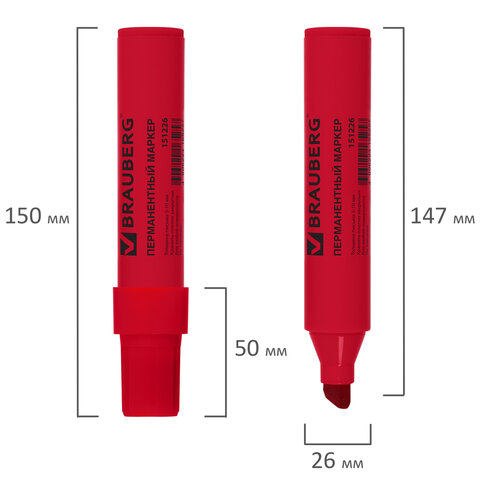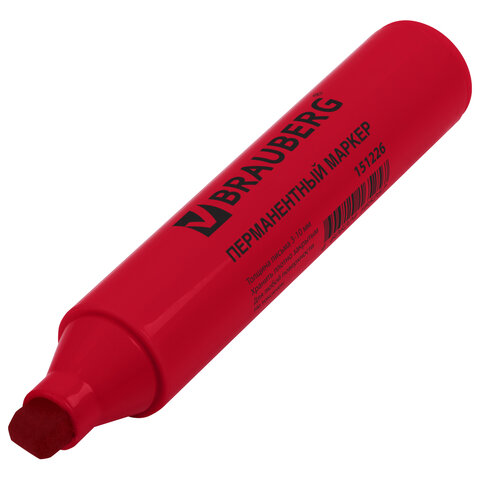 Маркер перманентный красного цвета обладает круглой формой корпуса из пластика, диаметр которого 26 мм. Толщина линии письма - 3-10 мм в зависимости от угла наклона. Особая нестираемая основа перманентного маркера обеспечивает такие качества, как стойкость к воздействию воды, ультрафиолета, низких и высоких температур. Благодаря спиртовой основе чернила быстро сохнут и не смазываются. Износостойкий фетровый наконечник устойчив к повреждениям и обеспечивает экономный расход чернил. Изделие не перезаправляется. Плотно закрывается колпачком, что предотвращает высыхание наконечника и чернил. Цвет корпуса и колпачка соответствует цвету чернил.