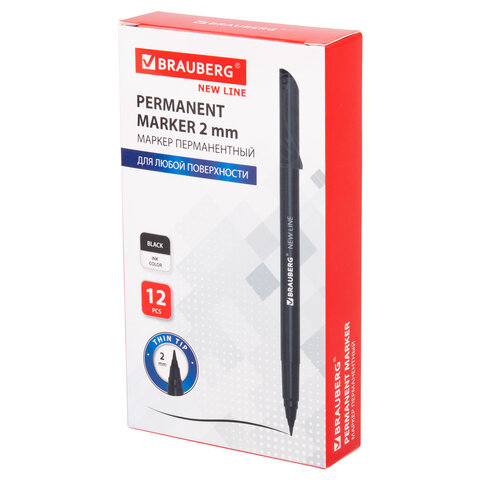 Высококачественный перманентный маркер BRAUBERG NEW LINE предназначен для письма на любой поверхности: бумага, полиэтилен, дерево, стекло, металл, натуральная кожа, ткань, камень, плитка.