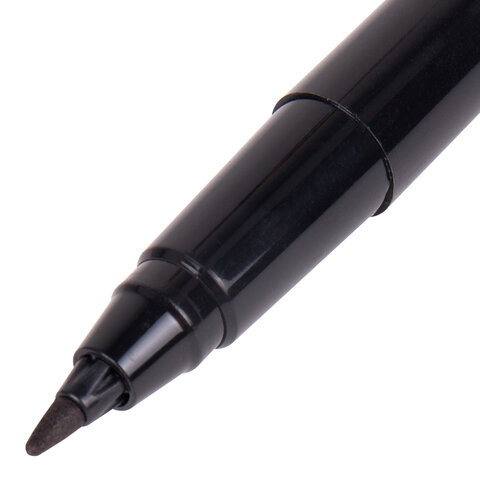 Маркер черного цвета обладает круглым тонким корпусом из пластика, диаметр которого 10 мм. Колпачок оснащен специальным выступом для предотвращения скатывания маркера. Толщина линии письма – 2 мм. Особая нестираемая основа перманентного маркера обеспечивает такие качества, как стойкость к воздействию воды, ультрафиолету, низких и высоких температур. Благодаря спиртовой основе чернила быстро сохнут и не размазываются. Износостойкий пулевидный наконечник устойчив к повреждениям и обеспечивает экономный расход чернил.