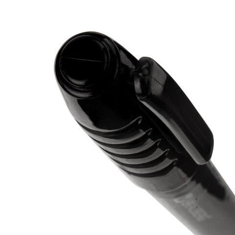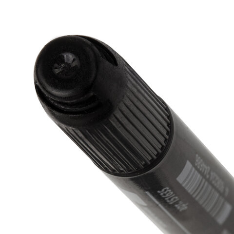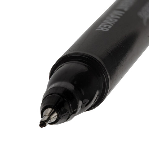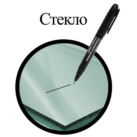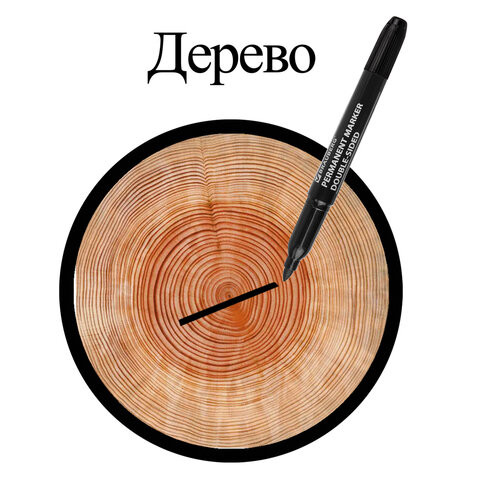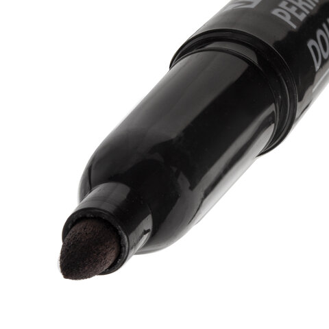Перманентный двусторонний маркер черного цвета имеет пластиковый корпус круглой формы диаметром 12,4 мм. Особая нестираемая основа перманентного маркера обеспечивает такие качества, как стойкость к воздействию воды, ультрафиолета, низких и высоких температур. Благодаря спиртовой основе чернила быстро сохнут и не размазываются. На противоположных концах корпуса имеет два износостойких наконечника. Толщина линии письма круглого фетрового наконечника - 3 мм, тонкого металлического - 0,8 мм. Изделие не перезаправляется. Плотно закрывается колпачком, что предотвращает высыхание наконечника и чернил. Цвет колпачка соответствует цвету чернил.