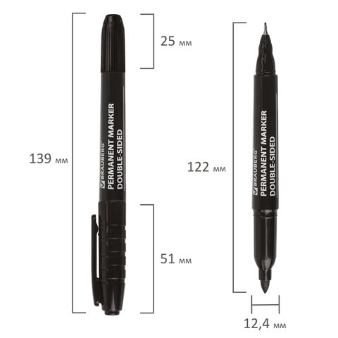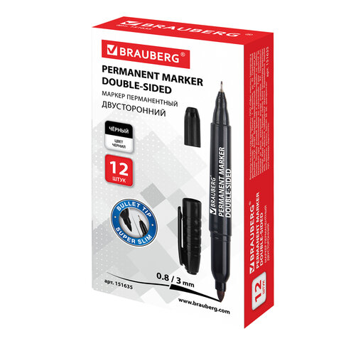 Надежный маркер BRAUBERG "DOUBLE" для повседневного использования. Предназначен для письма на любой поверхности: бумага, полиэтилен, дерево, стекло, металл, натуральная кожа, ткань, камень, плитка.