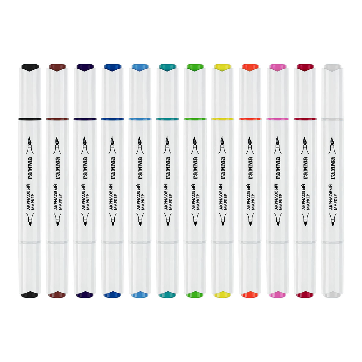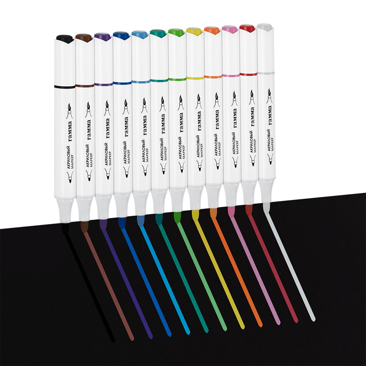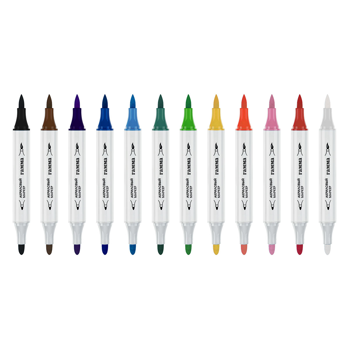 Набор акриловых маркеров Гамма серии "Классическая" для детского творчества и хобби. Набор состоит из 12 маркеров. Износостойкий наконечник из нейлона. На колпачке и корпусе вставка, обозначающая цвет чернил. Нумерация цвета на колпачке. Количество цветов: 12 цветов. Толщина линии – 1-6 мм, форма наконечника – кисть и пуля. Высокие укрывные свойства и стойкость после высыхания. Не требуют активации. Маркерами можно рисовать на различных поверхностях: бумага, ткань, дерево, камень, пластик, стекло и т.д. Набор в пластиковом кейсе с ручкой и ячейками для каждого маркера.