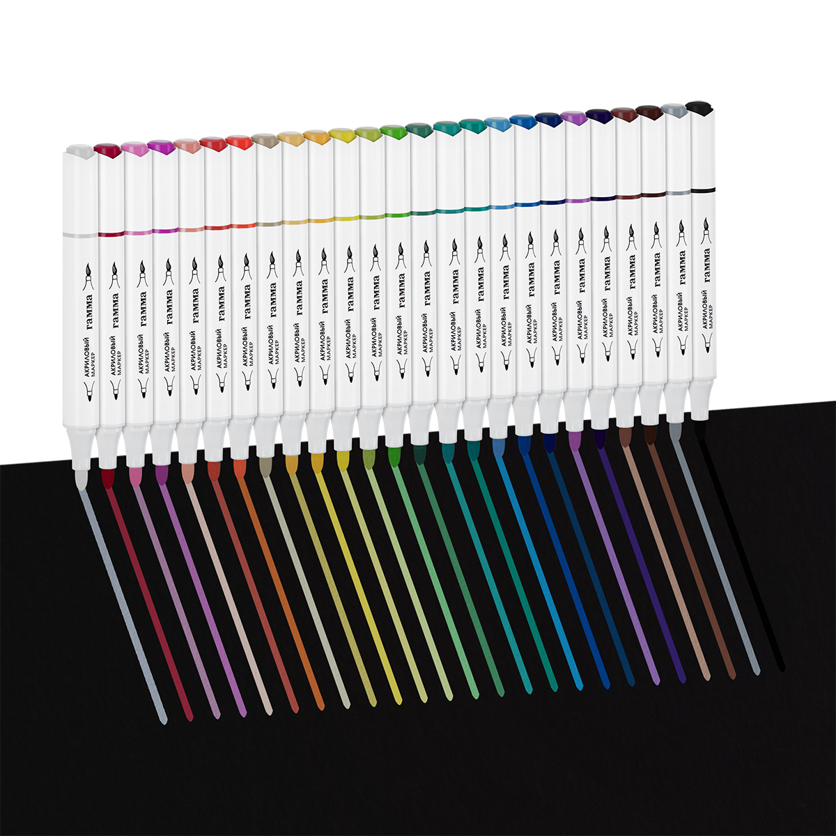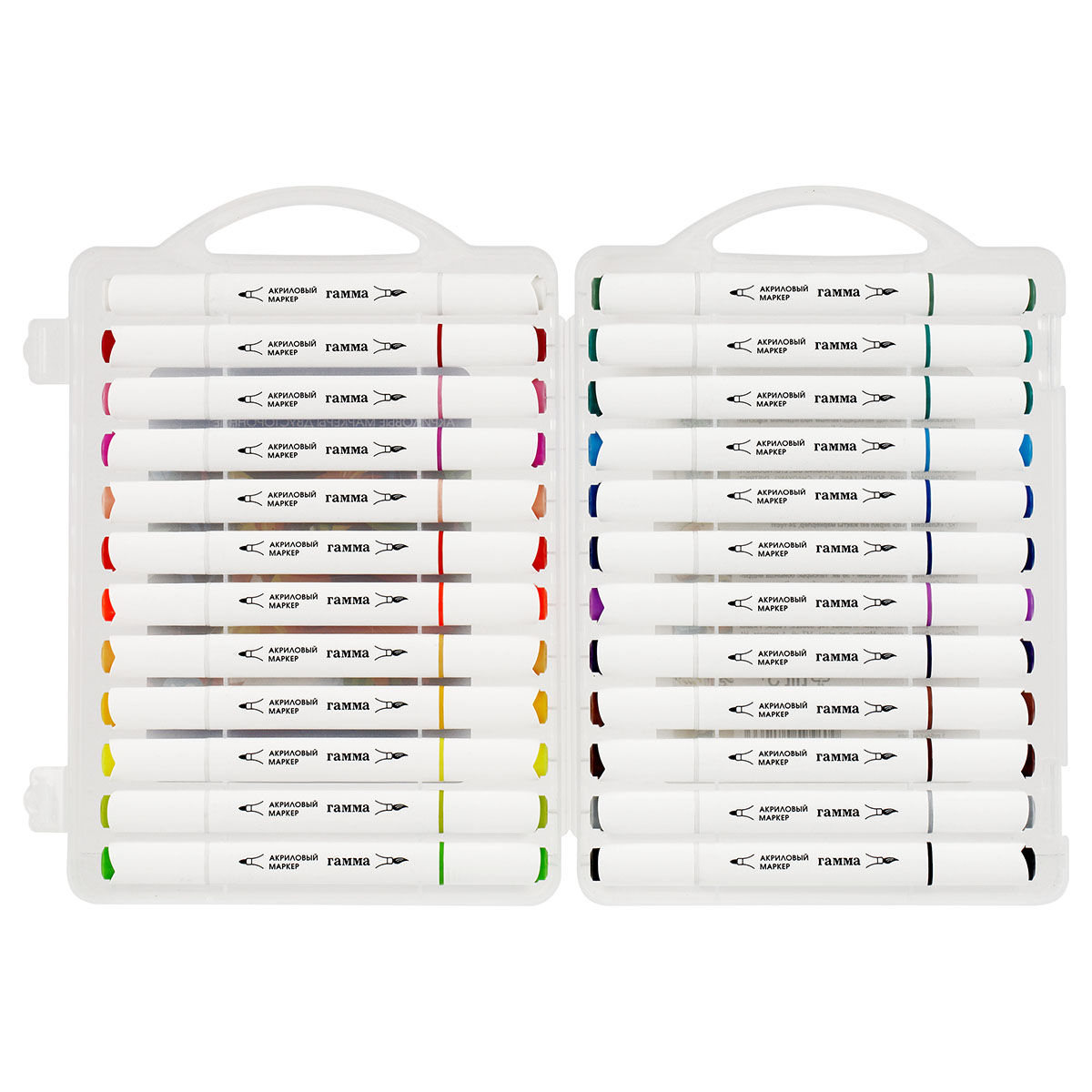 Маркеры акриловые Гамма "Классические", двухцветные, 24шт., 48 цв., пластик.бокс