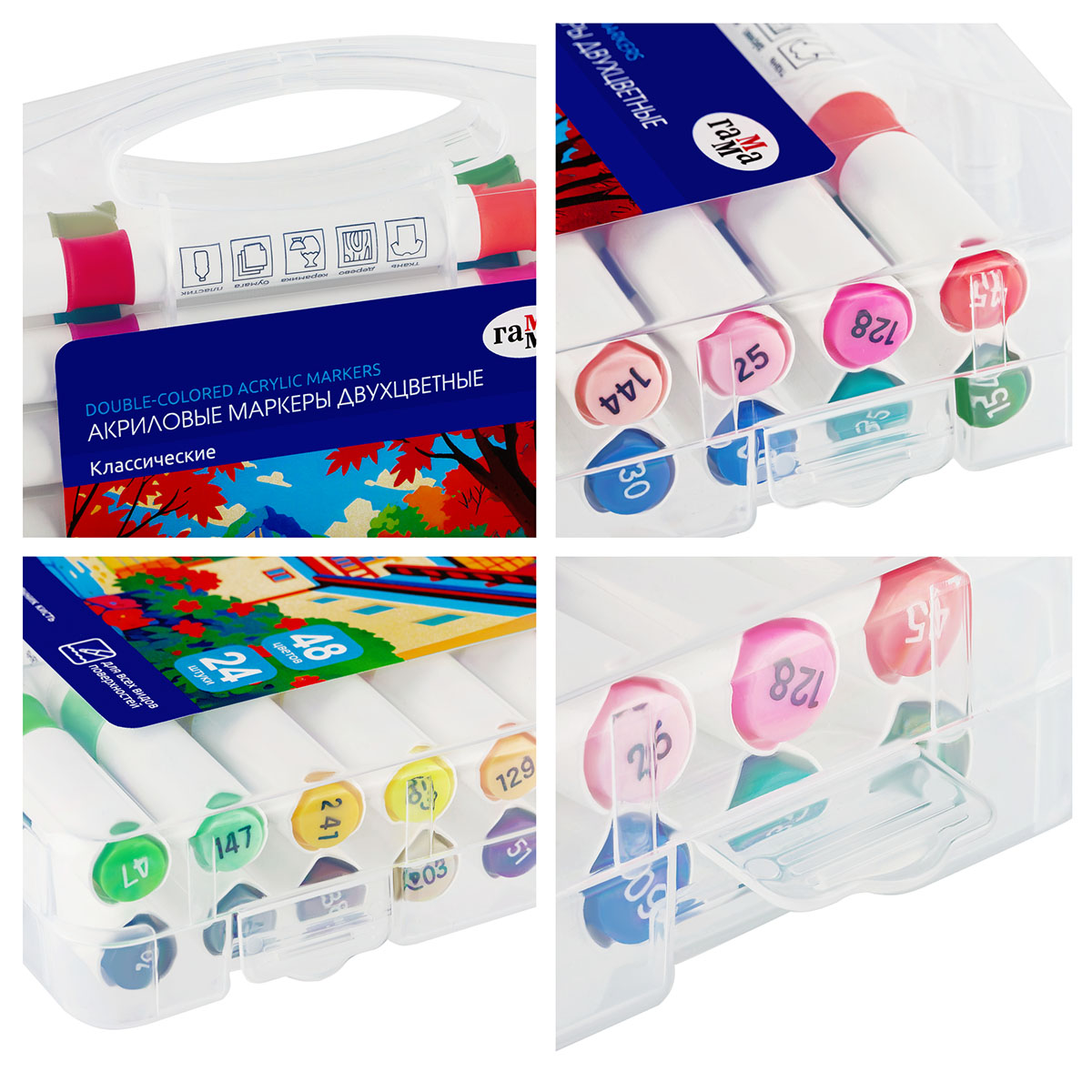 Маркеры акриловые Гамма "Классические", 48 цв., двусторонние, пластик.бокс