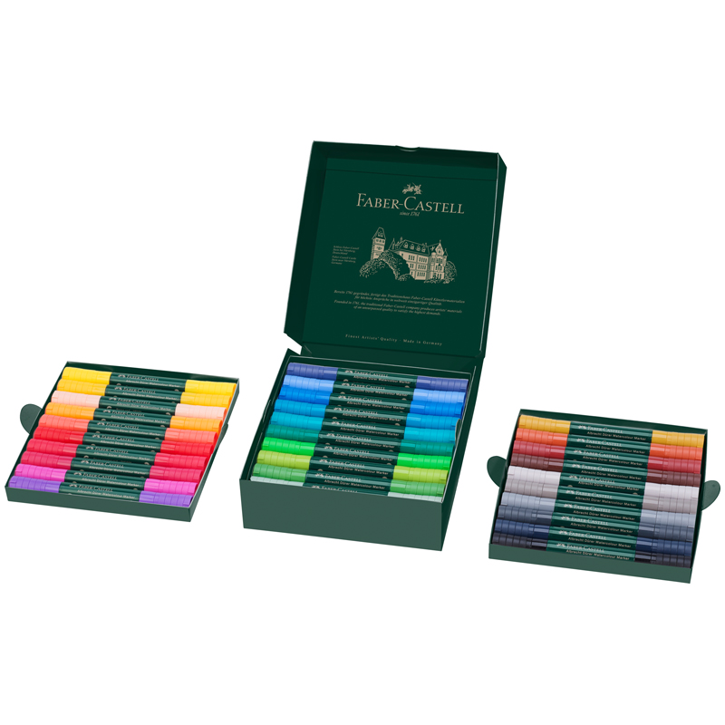 Набор акварельных художественных маркеров Albrecht Dürer от легендарного немецкого производителя Faber-Castell. Маркеры идеально подходят для скетчинга и смешанных художественных техник. Мягкий кистевой пишущий узел позволяет создавать наброски, а пулевидный наконечник идеален для рисования четких контуров. Высокопигментированные чернила высокой светостойкости отлично растворяется в воде и не оставляют следов на оборотной стороне акварельной бумаги. Набор состоит из 30 маркеров разных цветов.