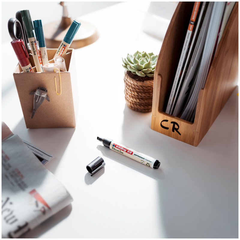 Набор перманентных маркеров Edding 22 в эргономичном пластиковом корпусе. Эти маркеры минимум на 90% изготовлены из возобновляемого сырья. Быстросохнущие нестираемые чернила на спиртовой основе без добавления толуола и ксилола почти не имеют запаха, устойчивы к истиранию, свету и воде. Идеально подходит для надписей на металле (в том числе и на грязном), картоне. Может использоваться для таких поверхностей, как дерево (в том числе влажное), стекло, пластик, керамика, кафель, различные пленки. Наконечник клиновидной формы обеспечивает толщину линии от 1 до 5 мм. Edding ECO E-22/1 является заправляемым. Страна производства — Германия. Цвет — черный. Серия Eco — с заботой о природе: экологичность обеспечивается использованием переработанных материалов при производстве и сокращенным расходом чернил (замена маркера происходит редко).