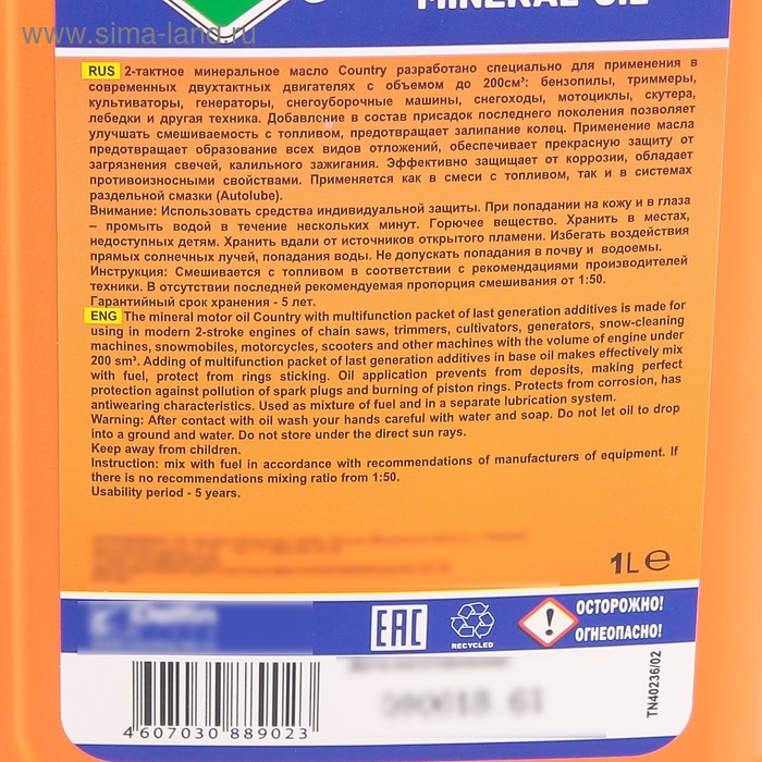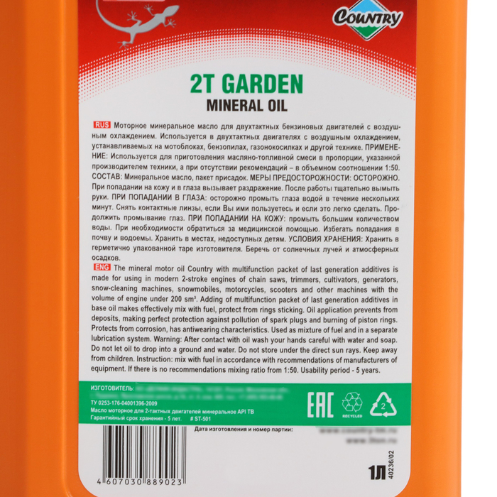 Масло четырехтактное Country полусинтетическое SAE 10w40 SJ/CF, 0.6 л
