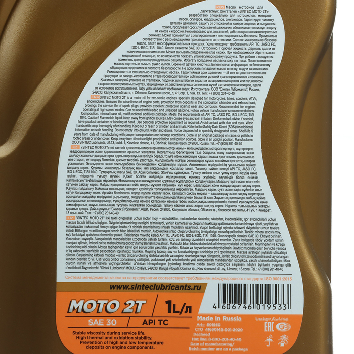 Масло моторное Sintec Мото 4T 20/50 Jaso MA2, минеральное, 1 л