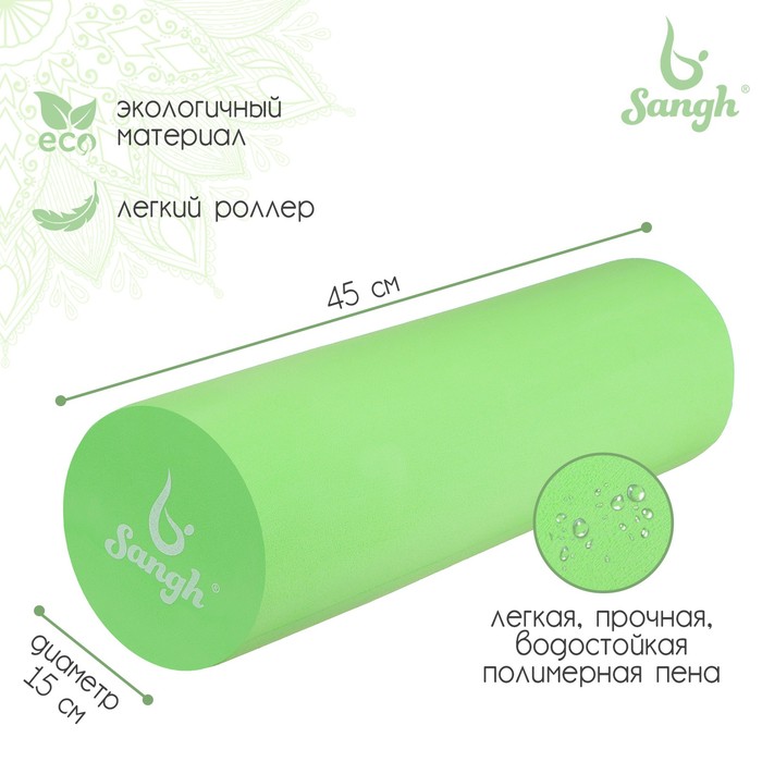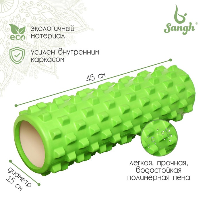 Ролик массажный Sangh, 45х15 см, цвет зелёный