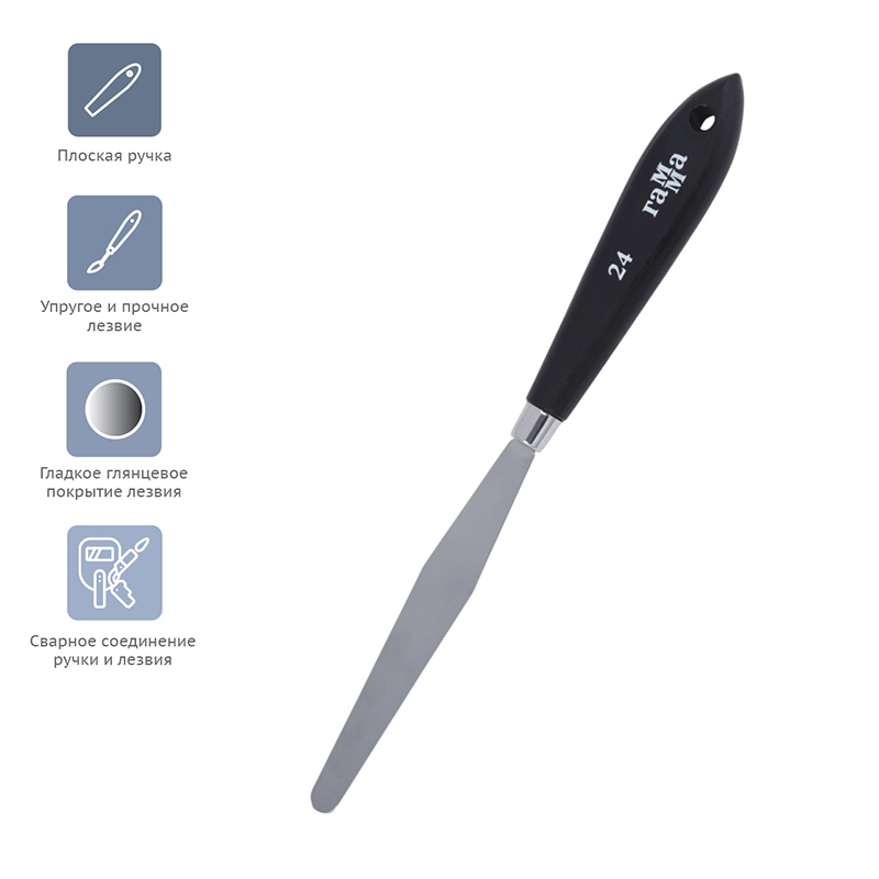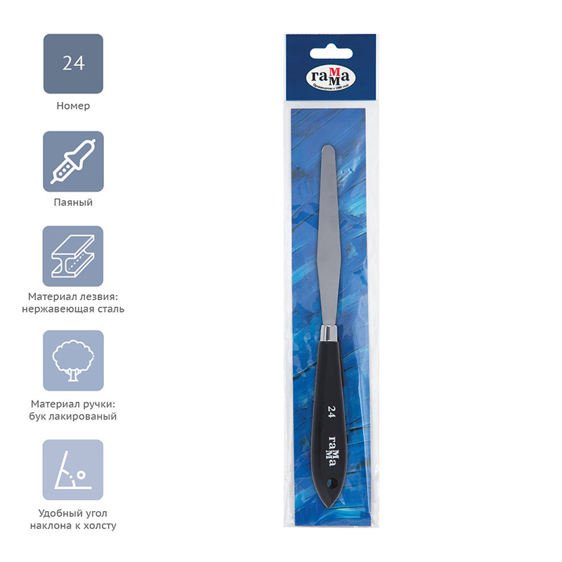 Паяный мастихин из нержавеющей стали с удобной плоской ручкой из натурального бука. Сварное соединение ручки и лезвия дает больший угол наклона мастихина к холсту, снижая вероятность случайного касания и смазывания краски.<br/>Форма лезвия — ромб.<br/>размер рабочей поверхности мастихина-110мм*16мм