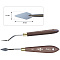 Мастихины серии «Старый Мастер» изготовлены вручную в Италии. Лезвие из нержавеющей стали прочное и упругое. Лезвие имеет специальное глянцевое покрытие для долговечной службы. Эргономичная ручка из натурального бука отполирована вручную и оснащена отверстием для хранения на подвесе. Бесшовная обойма гарантирует надежное соединение лезвия и ручки. Коллекция мастихинов представлена в 12 самых популярных видах лезвий: ромб, капля, «рыбка», овальное, прямоугольные.