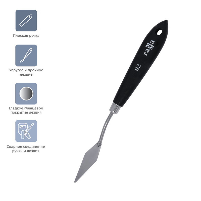 Паяный мастихин из нержавеющей стали с удобной плоской ручкой из натурального бука. Сварное соединение ручки и лезвия дает больший угол наклона мастихина к холсту, снижая вероятность случайного касания и смазывания краски.<br/>Форма лезвия — ромб.<br/>размер рабочей поверхности мастихина-50мм*15мм